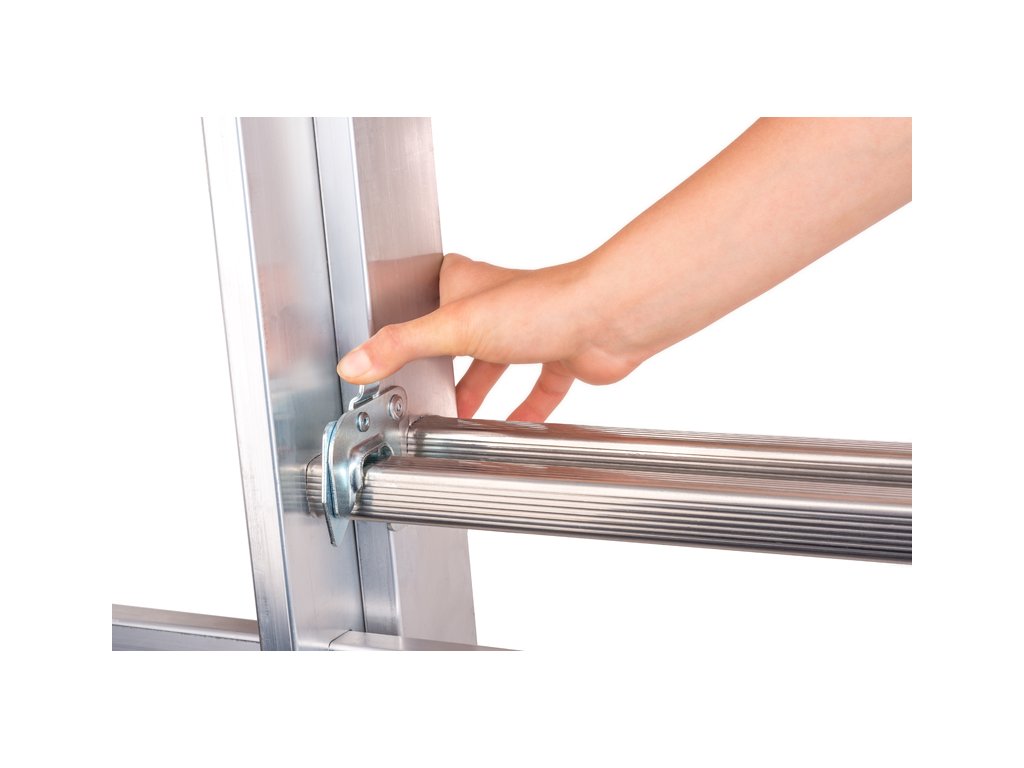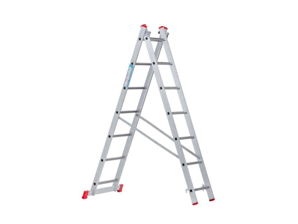 Dvoudílný žebřík 2x7 je vyroben z kvalitního odlehčeného hliníku. Díky lisovanému spojení příček s bočnicemi je zajištěná vysoká tuhost a životnost žebříku.