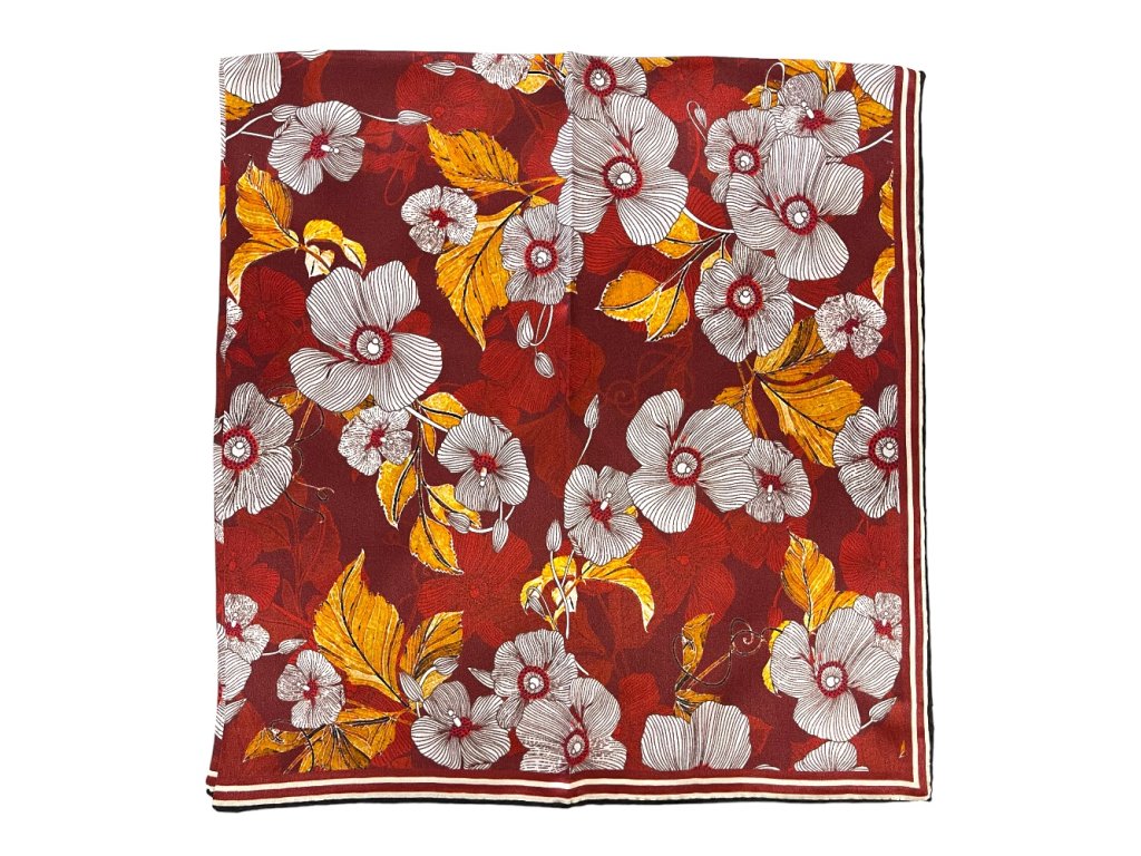 HEDVÁBNÝ ŠÁTEK - Květy na bordovém podkladu