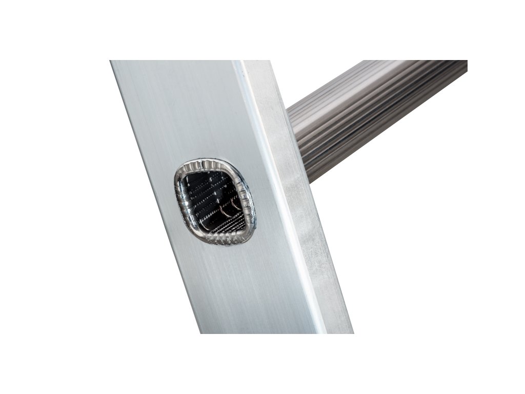 Opěrný žebřík 1x9 je vyroben z kvalitního odlehčeného hliníku. Díky lisovanému spojení příček s bočnicemi je zajištěná vysoká tuhost a životnost žebříku.