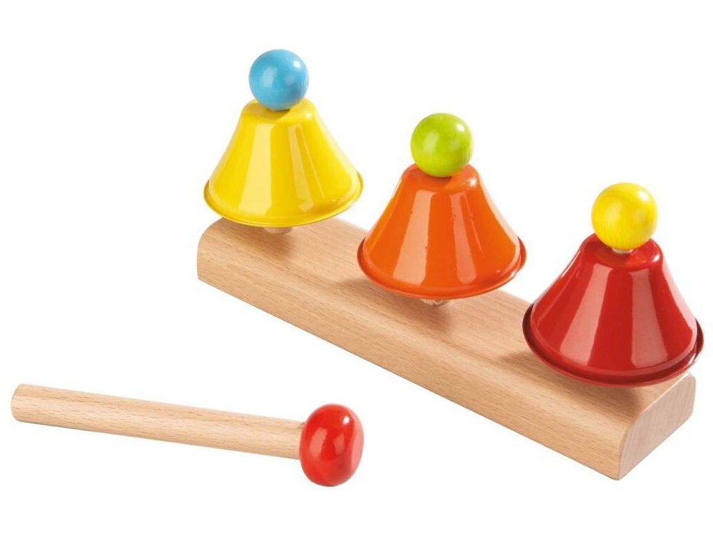 Klasická zvonkohra - ideálny hudobný nástroj pre deti už od prvých rôčkov života. Sada obsahuje zvonkohru s tromi zvončekmi a paličku na hranie.  Zvonkohry deti hravou formou zoznámia s čarovným svetom hudby, umožnia im jednoducho vylúdiť svoje prvé tóny či melódie. Zároveň si pri hre deti precvičia aj jemnú motoriku, koordináciu pohybov a kreativitu. Hračka je vhodná pre chlapcov aj pre dievčatá už od 2 rokov. Rozmery: 9 x 5 x 17 cm Materiál: drevo, kov